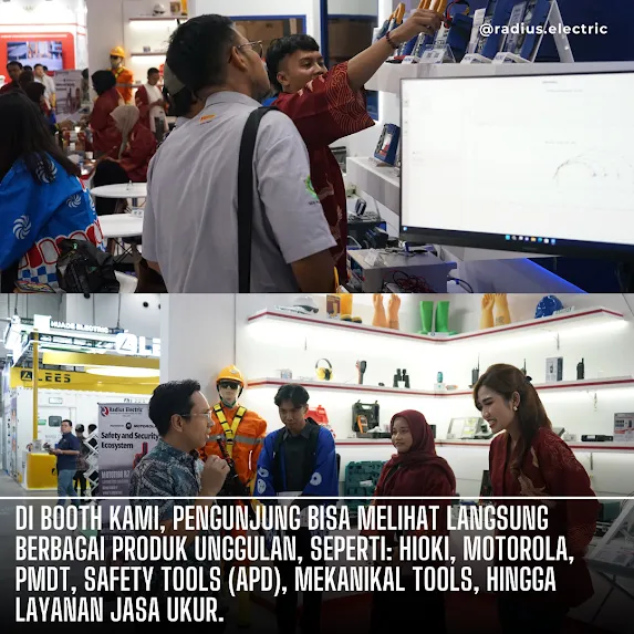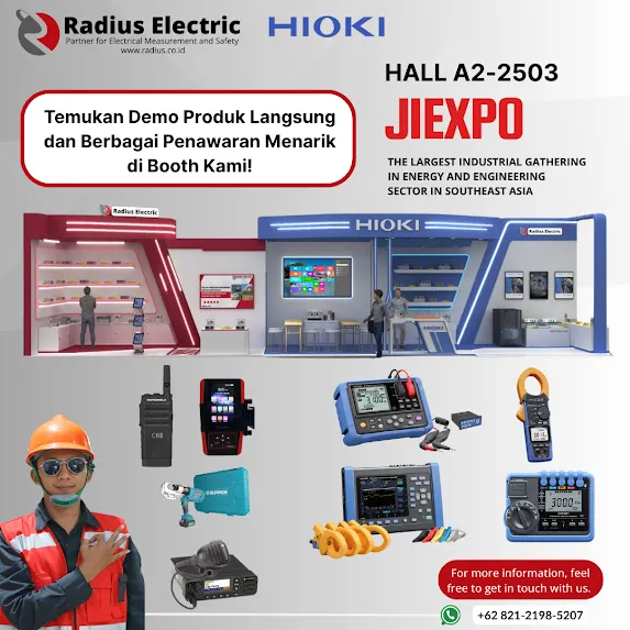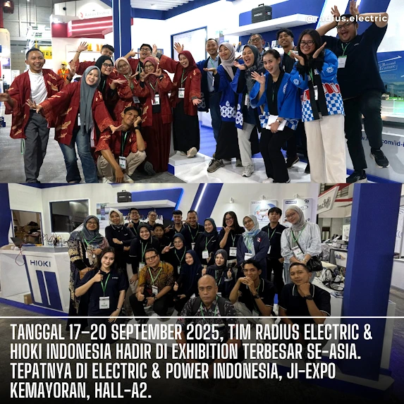 Tim Radius Electric bersama Hioki Indonesia hadir di Electric & Power Indonesia 2025 pada 17–20 September lalu di Ji-Expo Kemayoran, Hall A2. Di booth kami, pengunjung bisa melihat berbagai produk unggulan mulai dari Hioki, Motorola, PMDT, safety tools (APD), mekanikal tools, hingga layanan jasa ukur.